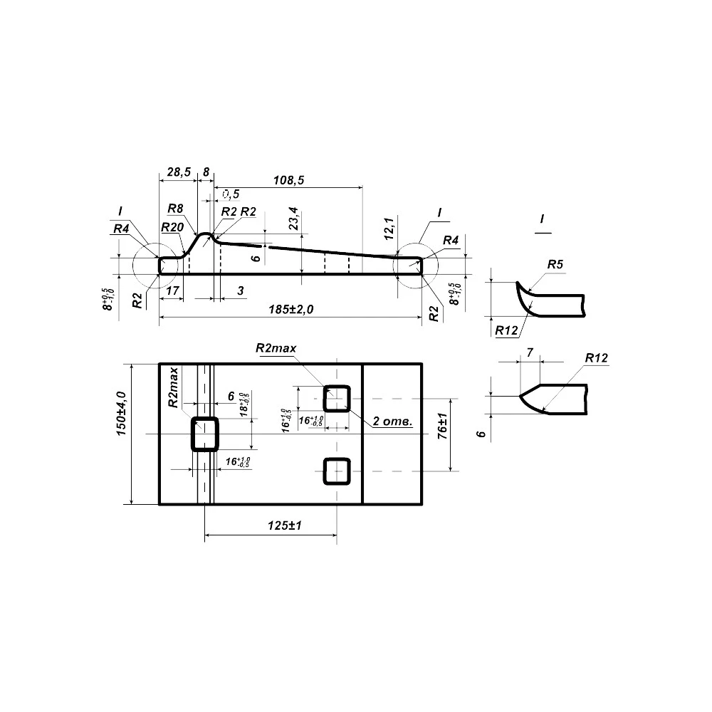 | Размеры отверстий, мм | 2 шт: 16 х 16; 1 шт: 16 х 18 |